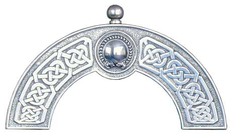 Brown dress sporran with a celtic torque cantle (Pewter top) The sporran is made with lorica and faux fur and is availble with either crossed or straight tassels.